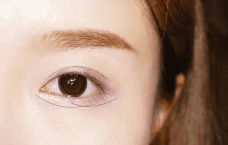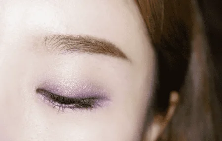 第五步:紫色眼影用锥形刷沾取,画在下眼睑的后二分之一的位置,珠光色眼影画在下眼头的二分之一。