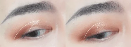 第一步:橘色眼影用晕染刷沾取晕染眼窝,酒红色眼影加深眼窝,范围要小于上一步。