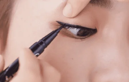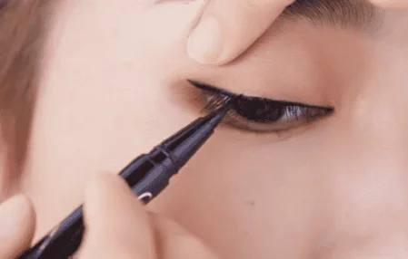 贴近睫毛根部细细的画出一条眼线,记住一定不要化得过粗。