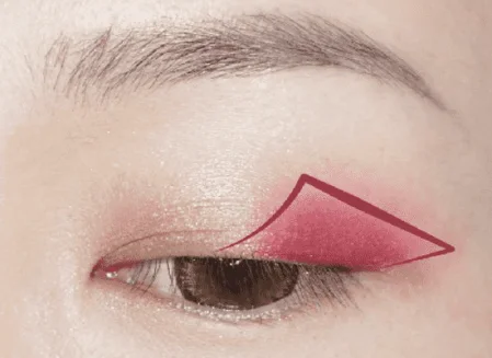 第三步:细节晕染刷取中间的酒红色,涂在下眼皮的睫毛根部,眼尾略宽与上眼皮连接,越靠近睫毛根部颜色越深。