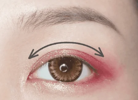 第二步:细节晕染刷取中间的酒红色,涂在后二分之一的眼褶内,圆头晕染刷向外晕染,两把刷子重复叠加晕染的动作。