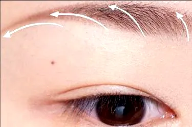 第三步:如果眉毛较为稀疏,可以用液体眉笔画出仿真的毛流,毛流彼此交错排列;