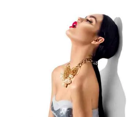 妆容解析:粗粗的一字眉透着女性的刚柔之美;金粉眼影妆扮的闪亮眼妆非常耀眼;细嫩的自然底妆配上粉粉的腮红,具有典雅之美。