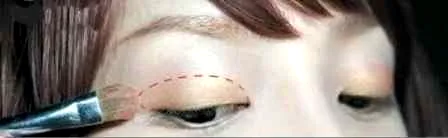 步骤二:用带有亮粉的鹅蛋**在图中范围打上眼影,要打出渐变的效果,而且和高光部分的衔接也要过度得自然。