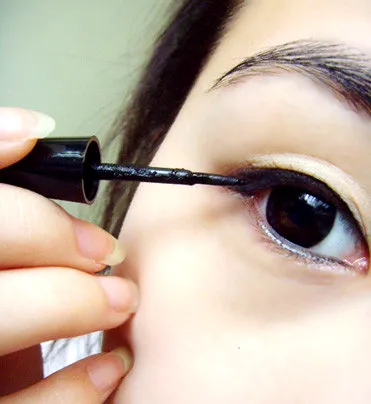 第七步:在用眼线液沿着眼线笔涂上一层,这样比较不容易晕妆。