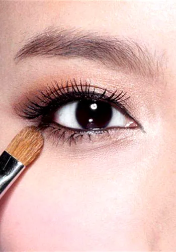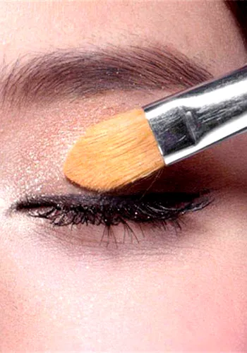 步骤一:选用眼影盘中最浅的颜色,在眼角上方提亮,这样会让眼睛看起来更加有神,眼部也更加立体。