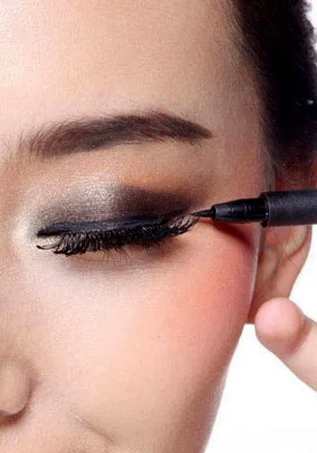 步骤六:用眼线液画上眼线,填满睫毛之间的空隙。