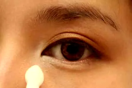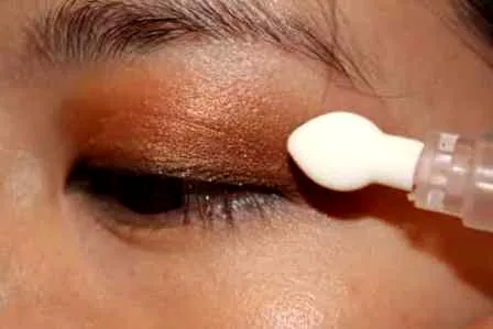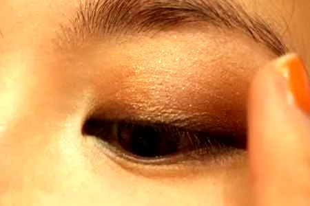 第五步:用手指再蘸取少量的白色眼影点在眼窝的中间部分。