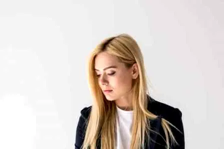 步骤三:第二步是眼妆,先用无名指蘸浅色眼影轻轻拍打在上眼睑打底。