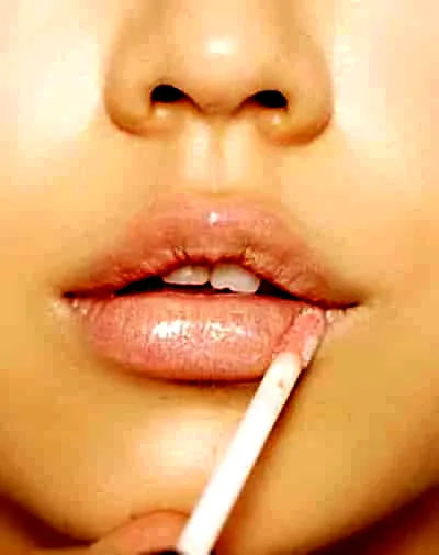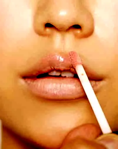 第三步:在唇峰外的位置上均匀涂抹浅色唇蜜,简单三步唇妆完成!