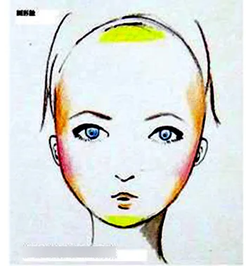 从额头两侧至太阳穴往下,在两颊边缘打暗,颧骨下方到下巴处都刷上暗色系的腮红或修容,另外在额头中间和下巴打上浅一号的粉底,让整体脸型变得更为修长,露出额头,不要为了遮圆脸,反而会把脸的比例弄得更短小。