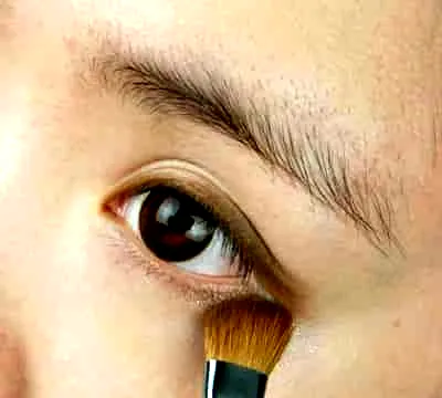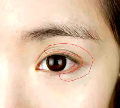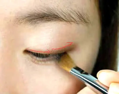 扁刷子从严重位置顺着睫毛根处,稍稍斜向上眼尾。