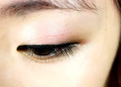 现在就画眼线,在眼线钱半段可以加粗一些的哦,显得眼睛圆圆的,更加的减龄。后面就自动收短 不用拉长。