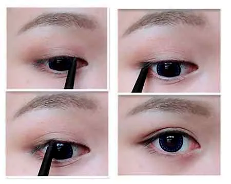 第五步:如图所示,紧贴睫毛根部画上一条纤细的内眼线。