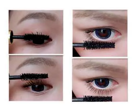 第六步:Z字形的涂上睫毛膏,下睫毛尽量的低下头刷。