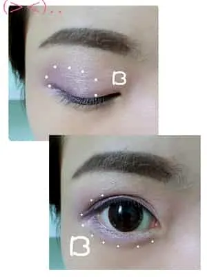 在眼窝处用白色眼影以半圆弧度画眼影。