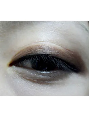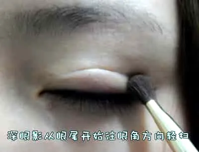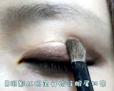 咖啡色眼影从眼角往眼尾方向轻扫。