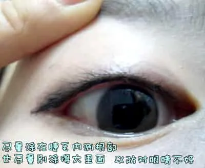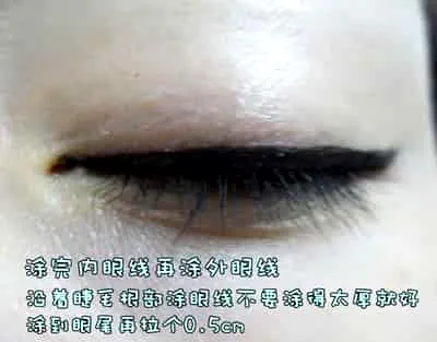 现在睫毛根部画上一条细细的内眼线,尽量不要画太里面。