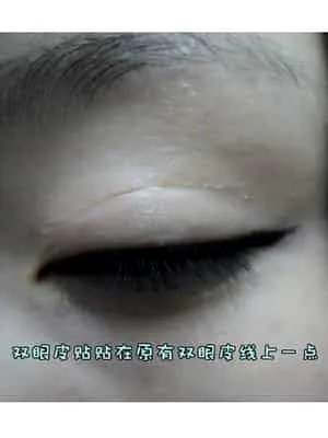 用双眼皮贴在原有双眼皮上面一点的地方贴好。