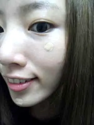 先为肌肤做修饰工作,利用遮瑕膏在黑眼圈,斑点,痘印都地方点涂。