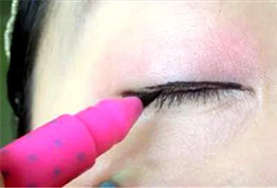 利用黑色眼影轻轻刷在下睫毛尾部。