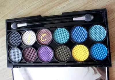 在眼影盒找到米色和咖啡色两种眼影。