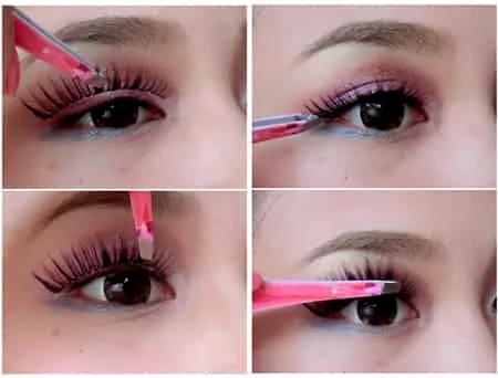 选择纤长型假睫毛沿着睫毛根部粘好。