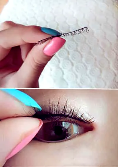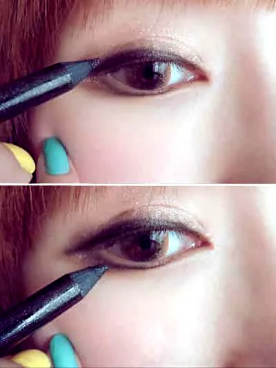 利用黑色或棕色眼线笔沿着睫毛根部画眼线,如图。