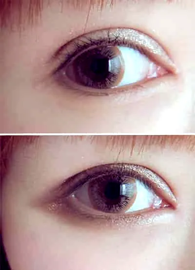 眼窝处刷上浅色眼影打底,使用棕色眼影加强眼尾部分,让眼睛有增大的效果。