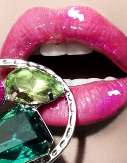 时尚点评:魅惑精灵就喜欢绿色唇妆,闪亮的唇蜜让妆容看上去更自信。