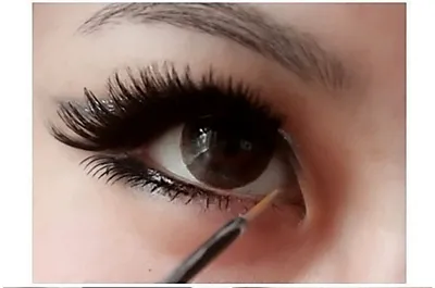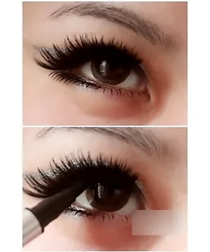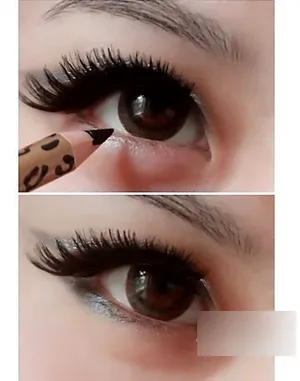 利用眼线笔把假睫毛和睫毛根部的空隙地方填补好,让它们有种合二为一的感觉。