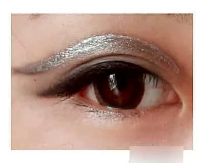 利用银灰色眼线液在双眼皮的上面画一条眼线,一定要与真正的眼线平行。