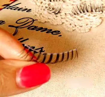 选择自然的纤长型假睫毛沿着睫毛根部粘贴。