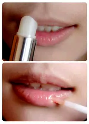 嘴唇有些干的美眉在上唇妆前可以用润唇膏滋润后,再用哑光的粉色唇彩或透明唇彩稍加点缀。