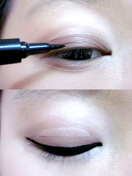 用眼线液笔将眼线画好,眼尾稍微上扬,整个眼线把握好弧度。