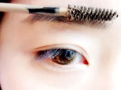 利用深棕色染眉膏顺着眉毛的方向晕染,这样还能整理出干净柔顺的眉妆。