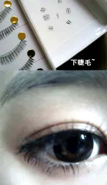 日系妆容步骤五:在上下睫毛根部粘贴假睫毛,上睫毛尽量选择纤长型,下睫毛选择自然型。