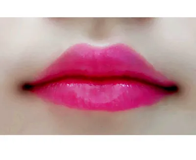 韩国妆容Step7:然后利用桃粉色唇彩沿着唇部中间向四周推开,唇部中间比较水润会显得双唇非常丰满。