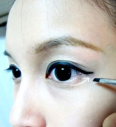 Step3:然后用眼线膏来画眼线,注意眼尾不要拉太长。下眼线也画,建议从眼尾往前画。