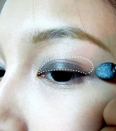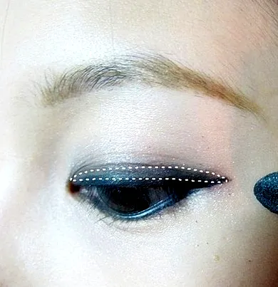 Step4:接着再涂上黑色的珠光眼影,涂在虚线的部位,(如图所示)。