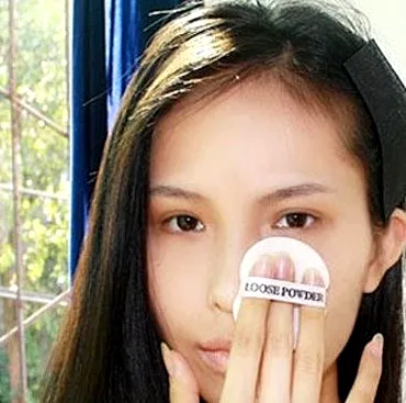 Step2:选择哑光的蜜粉在全脸轻轻拍打,在T区需要按压几下,作为定妆。