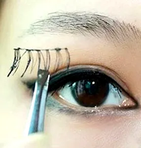 Step7:接着贴假睫毛,首先将假睫毛剪成两半,分别在睫毛的后半部分粘贴。