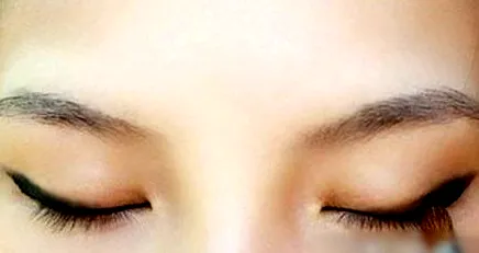 Step4:用眼线膏画眼线,先勾勒一条自然的眼线,然后从眼线的二分之一处往后加粗线条。