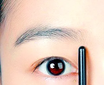 2、笔杆经过眼珠外缘,同时笔杆经过眉毛的一点就是眉锋。