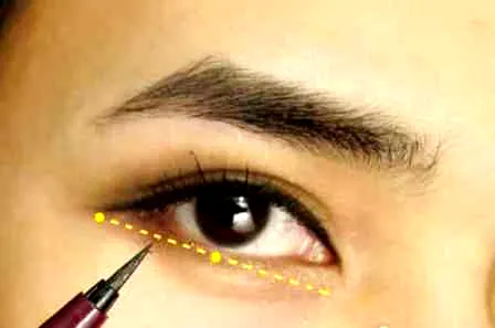 步骤六:将眼尾部分的眼线自然向下拉长。