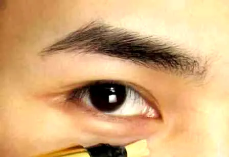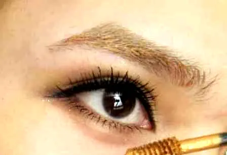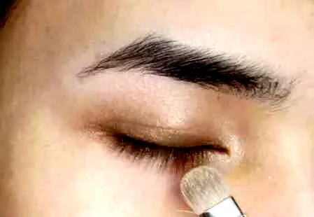 步骤三:然后开始塑造眼睛轮廓,选择带有珠光的眼影,可使眼睛更明亮。