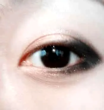 眼妆Step4:然后用中号眼影刷蘸取黑色眼影在眼尾部分加强,如图。
