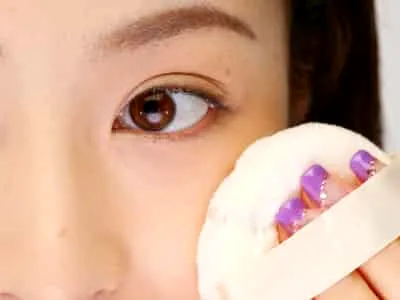 Step3:底妆基本完成后,用粉扑蘸取散粉在全脸轻轻拍打,T区需要稍微加重。