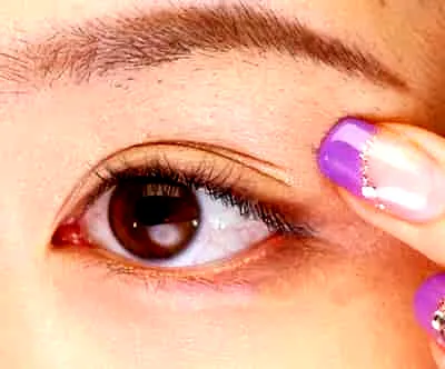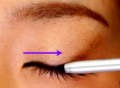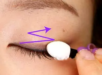 Step7:眼影刷蘸取棕色眼影,从睫毛根部往上呈Z字型手法推,把眼线和眼影重合在一起。