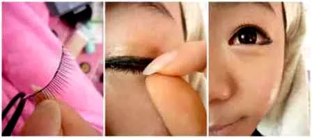 步骤六:再粘上一款合适的假睫毛,将假睫毛沾在睫毛的根部,粘好后,再涂一层睫毛膏。